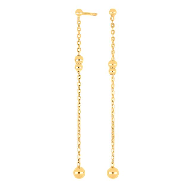 Die zeitlosen Ohrringe sind aus echtem Sterlingsilber und mit 18 Karat Gold vergoldet. Sie sind 50mm lang und ein Teil der Serie Beadit52.